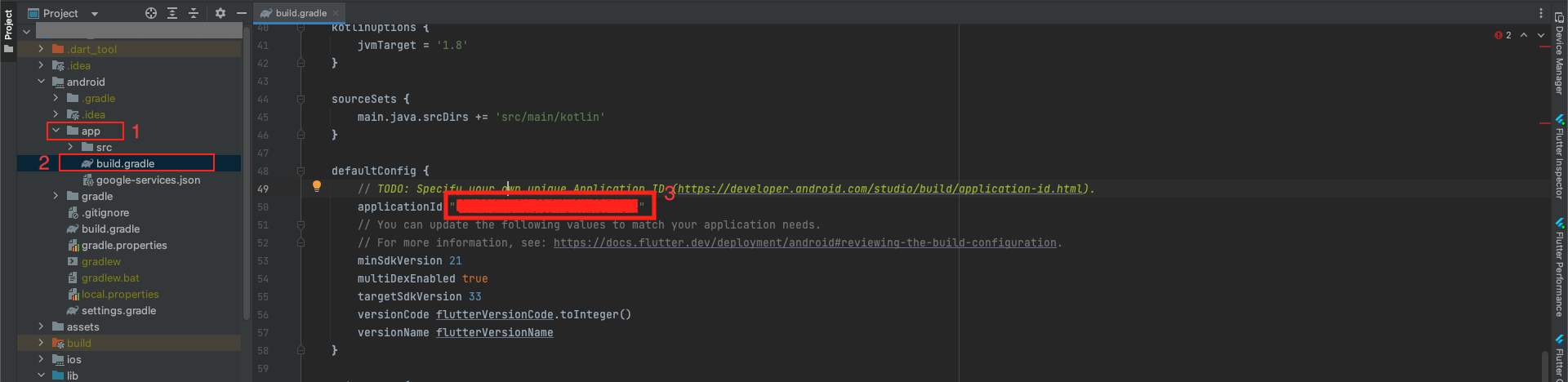- Within this file, update the "applicationId" and its corresponding dependencies as necessary