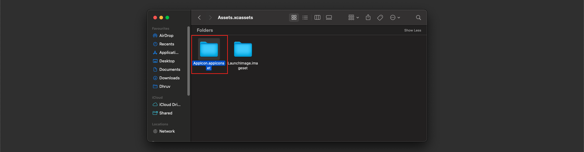 - Navigate to the "ios/Runner directory and locate the ".x" file. Right-click on the "Runner" folder and select "open in Finder". Once in Finder, delete the .x" folder. Then, paste the .x" folder from the "AppIcon" directory that you have downloaded.