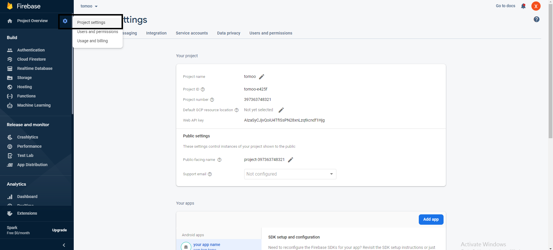 - The file & Key ID can now be added to your Firebase Project. On the Firebase Console, navigate to the "Project settings" and select the "Cloud Messaging" tab. Select your iOS application under the "iOS app configuration" heading.s