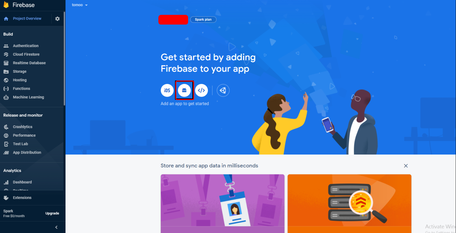 - In the next step, we have to choose the platform to add Firebase to our application. Click on Android.