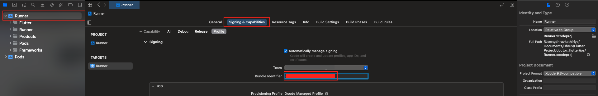 - After successfully opening the project in Xcode, proceed to the following steps: