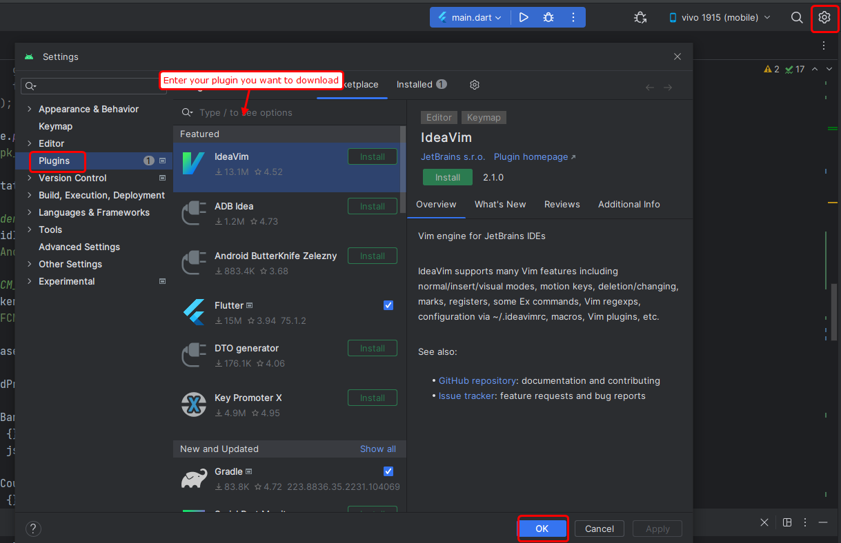- In the search bar within the pop-up, enter the names of the plugins you wish to install (as shown in the image below).