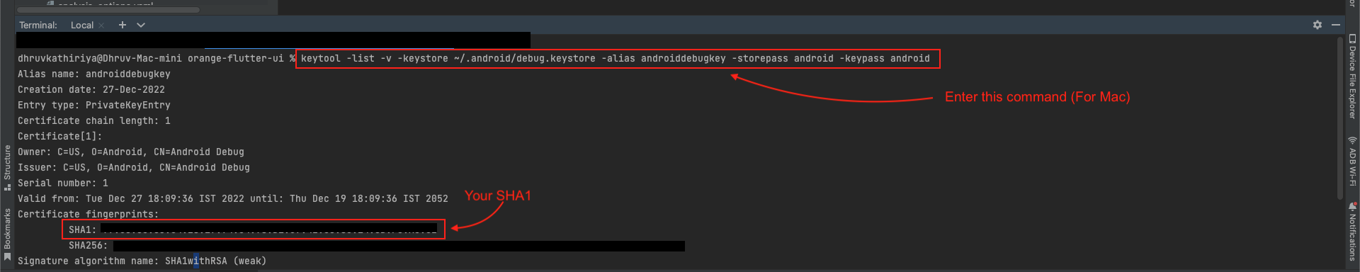 - Note: If you are unable find the SHA-1 key, kindly refer to theLinkand follow the instructions to complete the setup as directed.